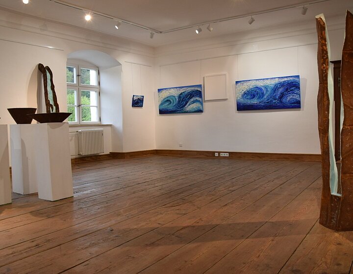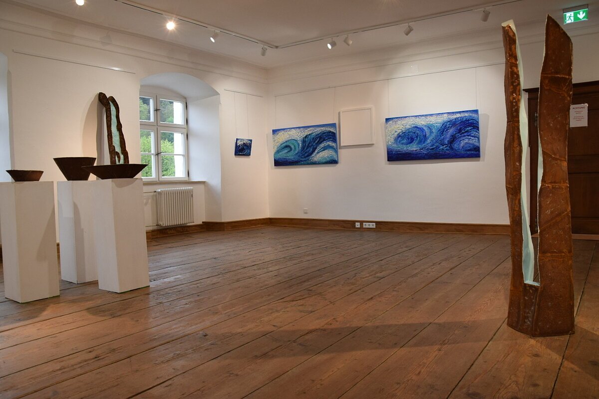 Sie werden Wasser in seinen Aggregatzuständen künstlerisch interpretiert sehen in Malerei, Zeichnung, Grafik, Bildhauerei, Textil und Fotografie.