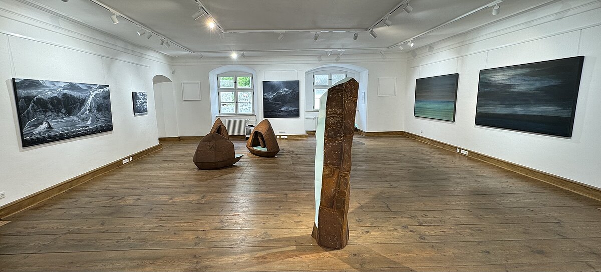 Davor glitzernd-silbrig grau die Altmühl, deren Fließen die Verbindung zum zweiten Ausstellungsteil herstellt.