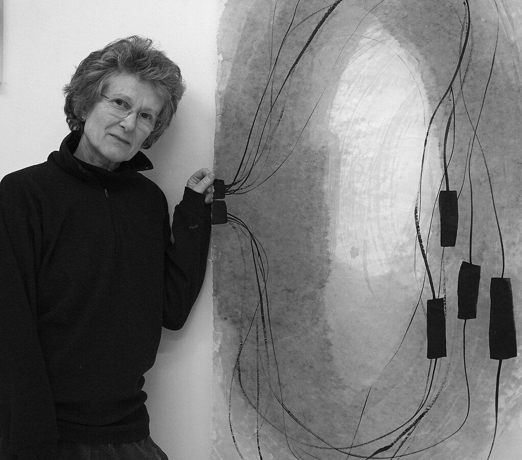 Barbara Ehrmann aus Ravensburg verarbeitet ihre Erfahrungen als Apnoetaucherin und lässt ihre inneren Bilder zu zarten Figurationen und Chiffren aus Tusche auf Japanpapier werden.