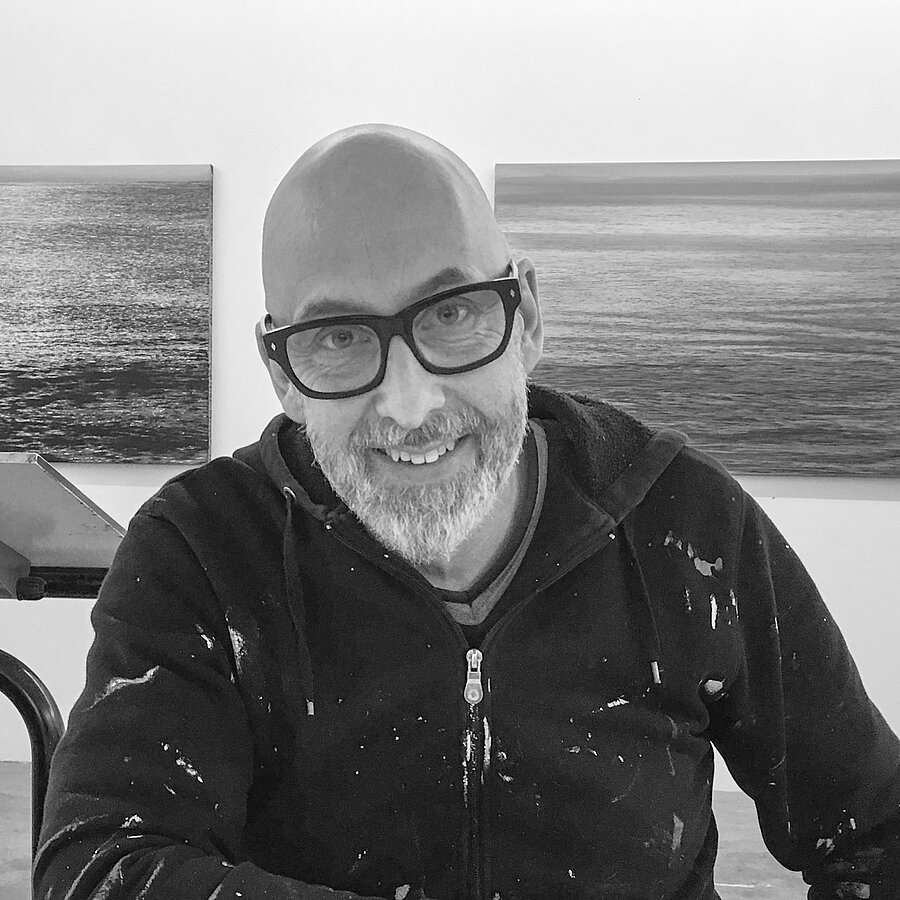 Jochen Hein aus Hamburg spielt mit der Wahrnehmung des Betrachters in imposanten Küstenlandschaften, mit mächtigen Gletscherabbrüchen und Felsen, aus der Ferne minutiös, aus der Nähe sich auflösend.