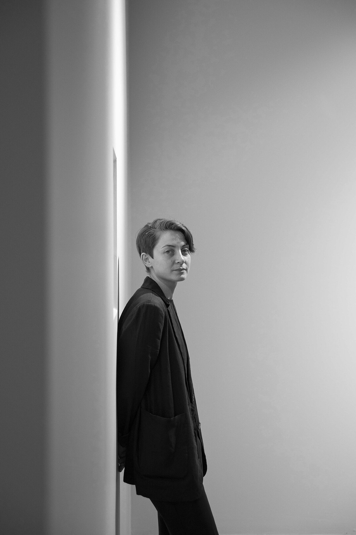 Çiĝdem Aky öffnet Fenster in ihren Leinwänden, in denen atmosphärische Farbübergänge einen Tiefenraum erzeugen und von kontrollierten linearen Spuren breiter Pinselstriche umrahmt werden. Eine malerische Architektur entsteht, die Pigmente materialisiert.