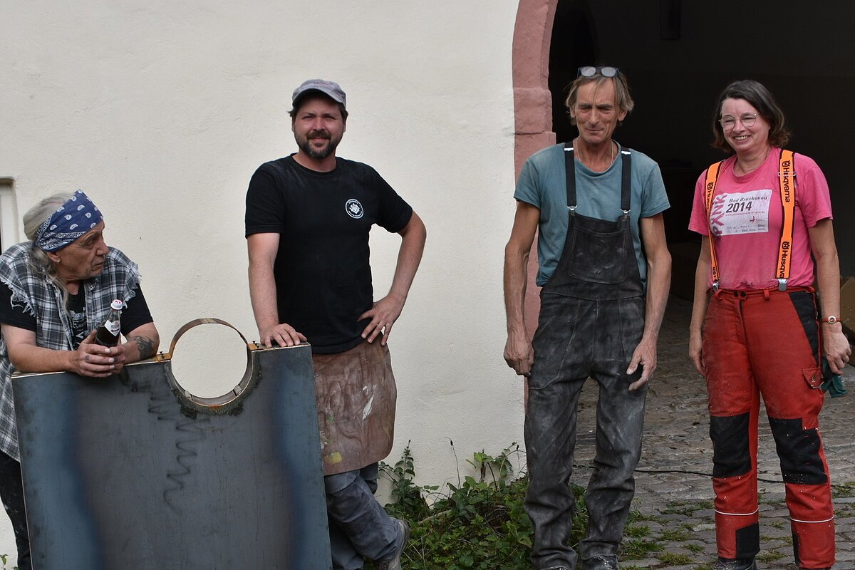 Die Künstler, im Bild von links nach rechts, Michael Königer, Günter Schinn, Florian Zeitler und Frau Dr. Annegret Schreder nutzten den Garten im MEMU um interessante und wunderbare Werke zu schaffen.
